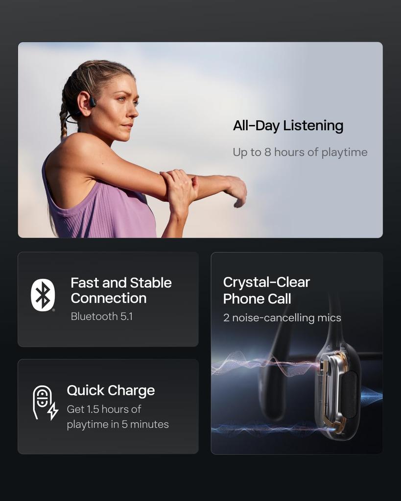 PremiumPitch 2.0+ Technology: Produces clear, vibrant sound despite open-ear design.